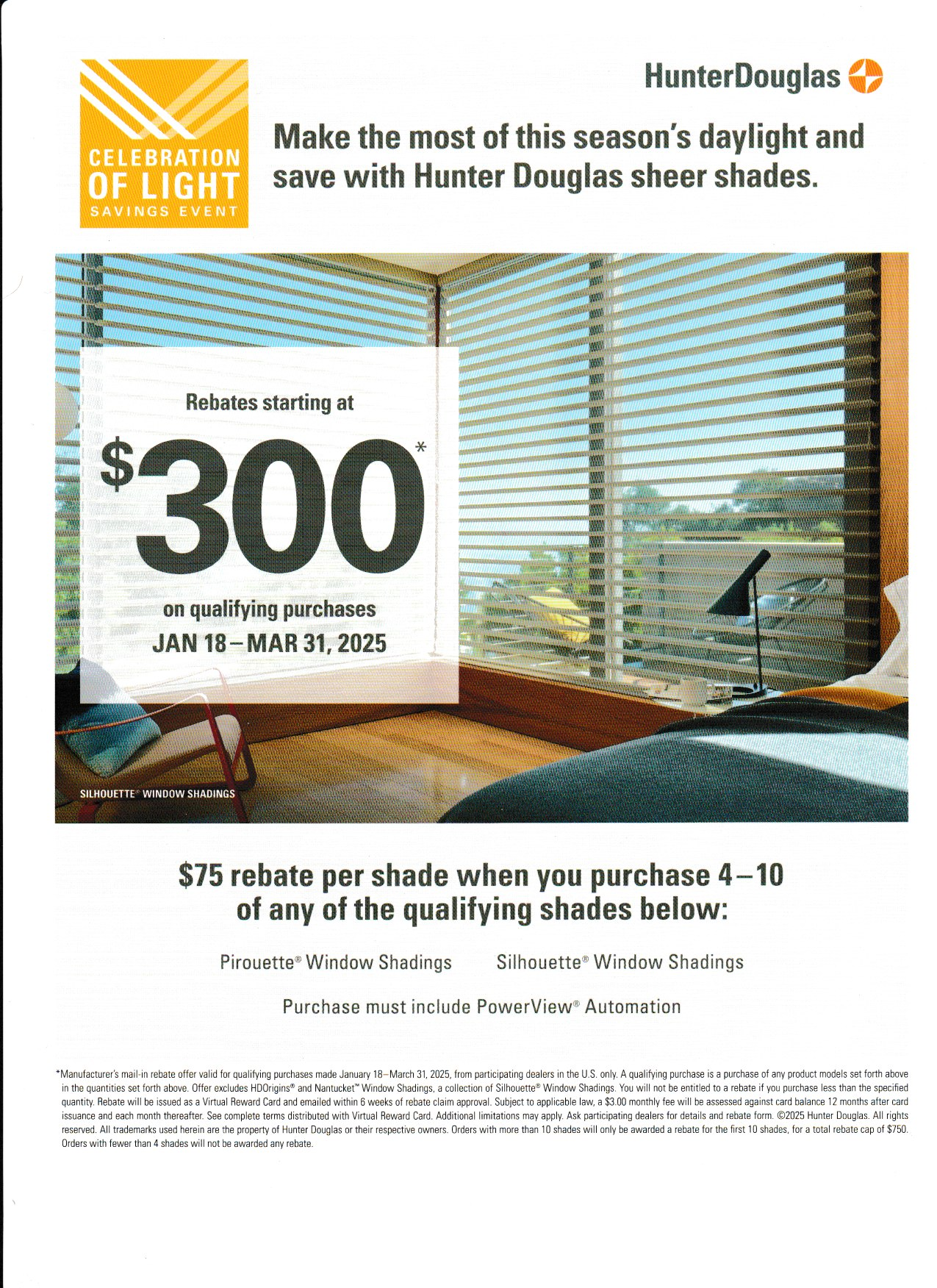 The rebate offer from Hunter Douglas for first quarter runs from Jan 18 to Mar 31.